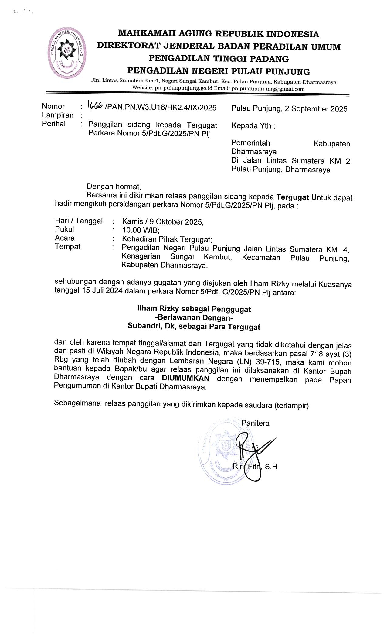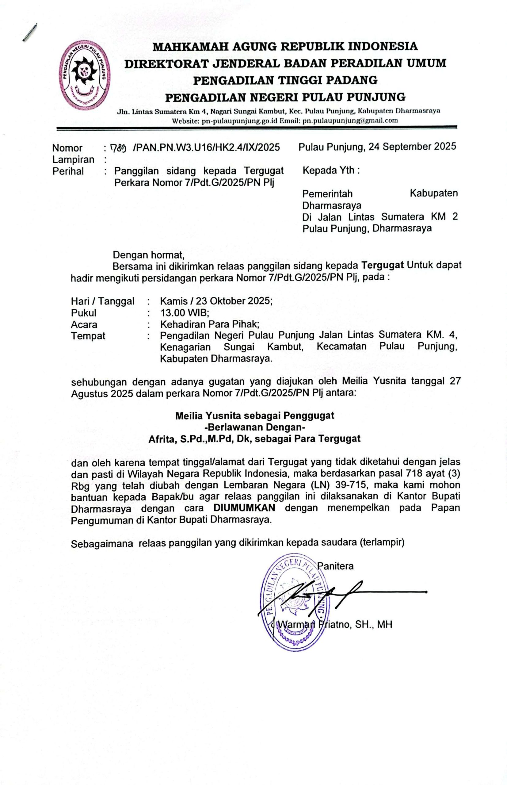 Sosial Media Resmi Pengadilan Pulau Punjung: