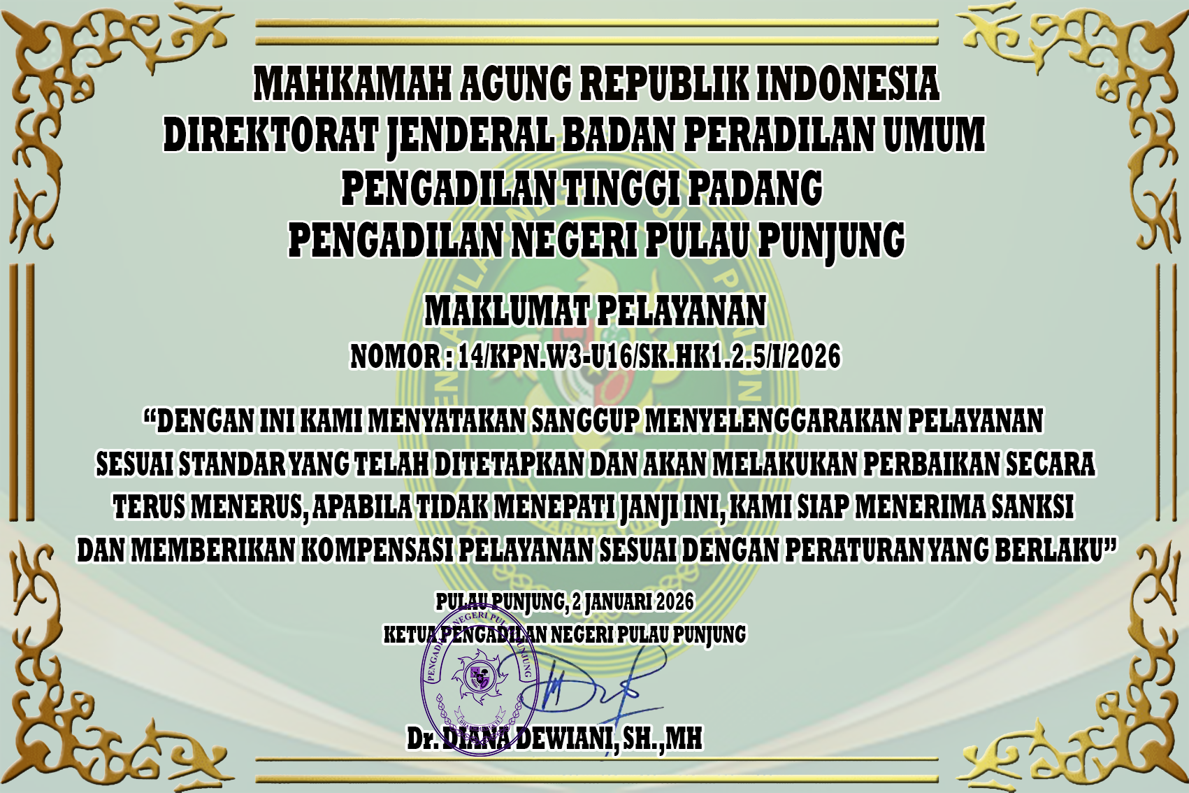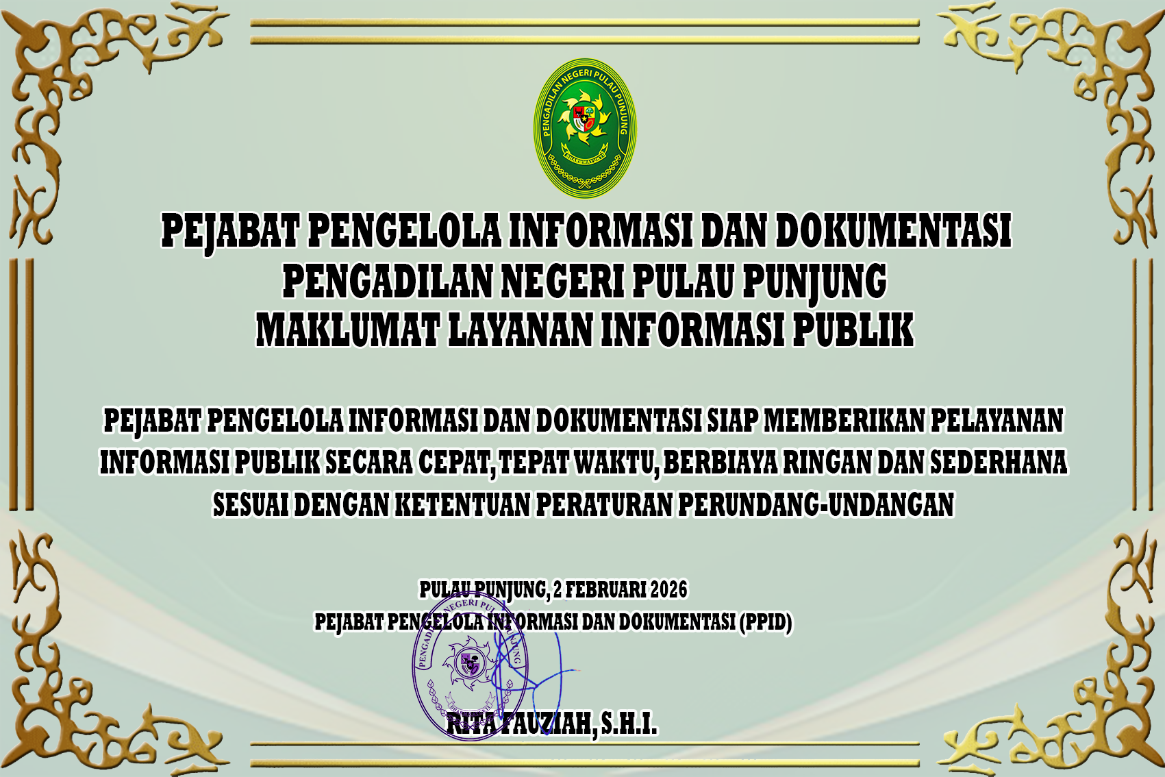 Berdasarkan Keputusan Ketua Mahkamah Agung Republik Indonesia Nomor 2-144/KMA/SK/VIII/2022 tentang Standar Pelayanan Informasi Publik di Pengadilan