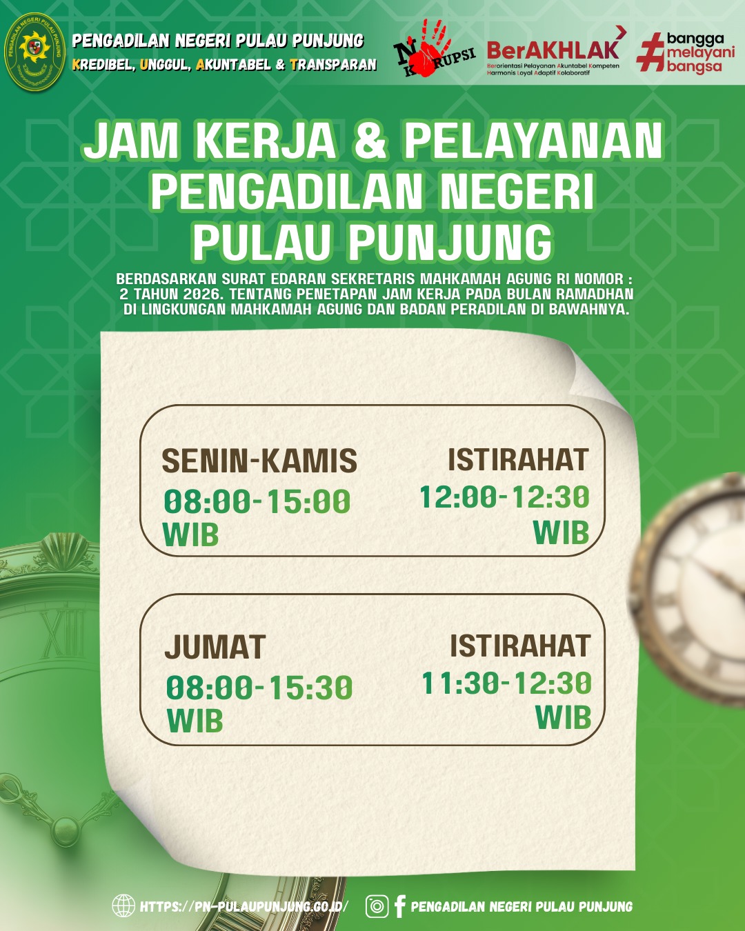JAM KERJA & PELAYANAN PENGADILAN…