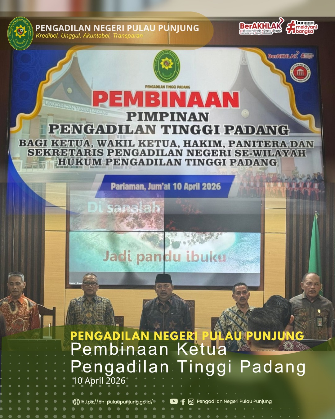 Jum’at, 10 April 2026, bertempat di Pengadilan Negeri Pariaman, telah dilaksanakan kegiatan Pembinaan Ketua Pengadilan Tinggi Padang.