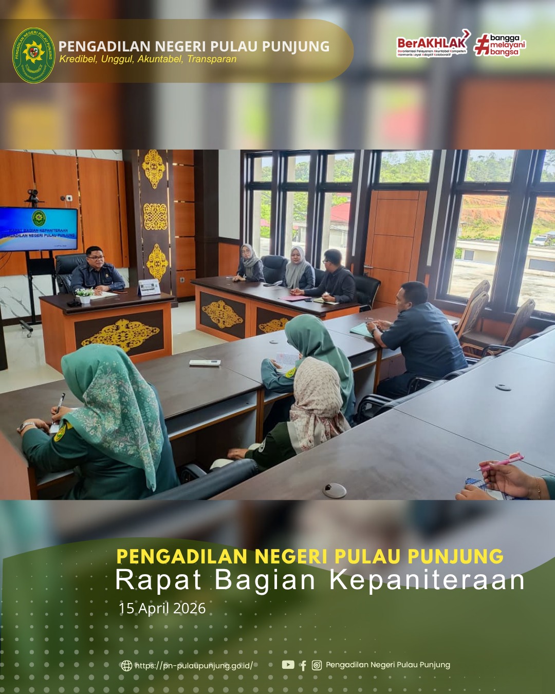 Rabu, 15 April 2026, bertempat di Ruang Media Center Pengadilan Negeri Pulau Punjung, telah dilaksanakan kegiatan Rapat Bagian Kepaniteraan yang dipimpin oleh Bapak Warman Priatno, S.H., M.H. selaku Panitera.