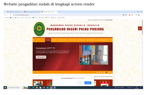 Sarana dan Prasarana Bagi Penyandang Disabilitas Posted on 2 Januari 2026 Lihat Artikel Terkait Lainnya:RELAAS PEMBERITAHUAN PUTUSAN BANDING KEPADA TERGUGATPengambilan Sumpah Jabatan dan Pelantikan Pegawai Negeri Sipil Golongan IIInformasi Serta MertaPENERIMAAN SERTIFIKAT AKREDITASILaporan Pelaksanaan Kegiatan 2021 Pengadilan Negeri Pulau Punjung