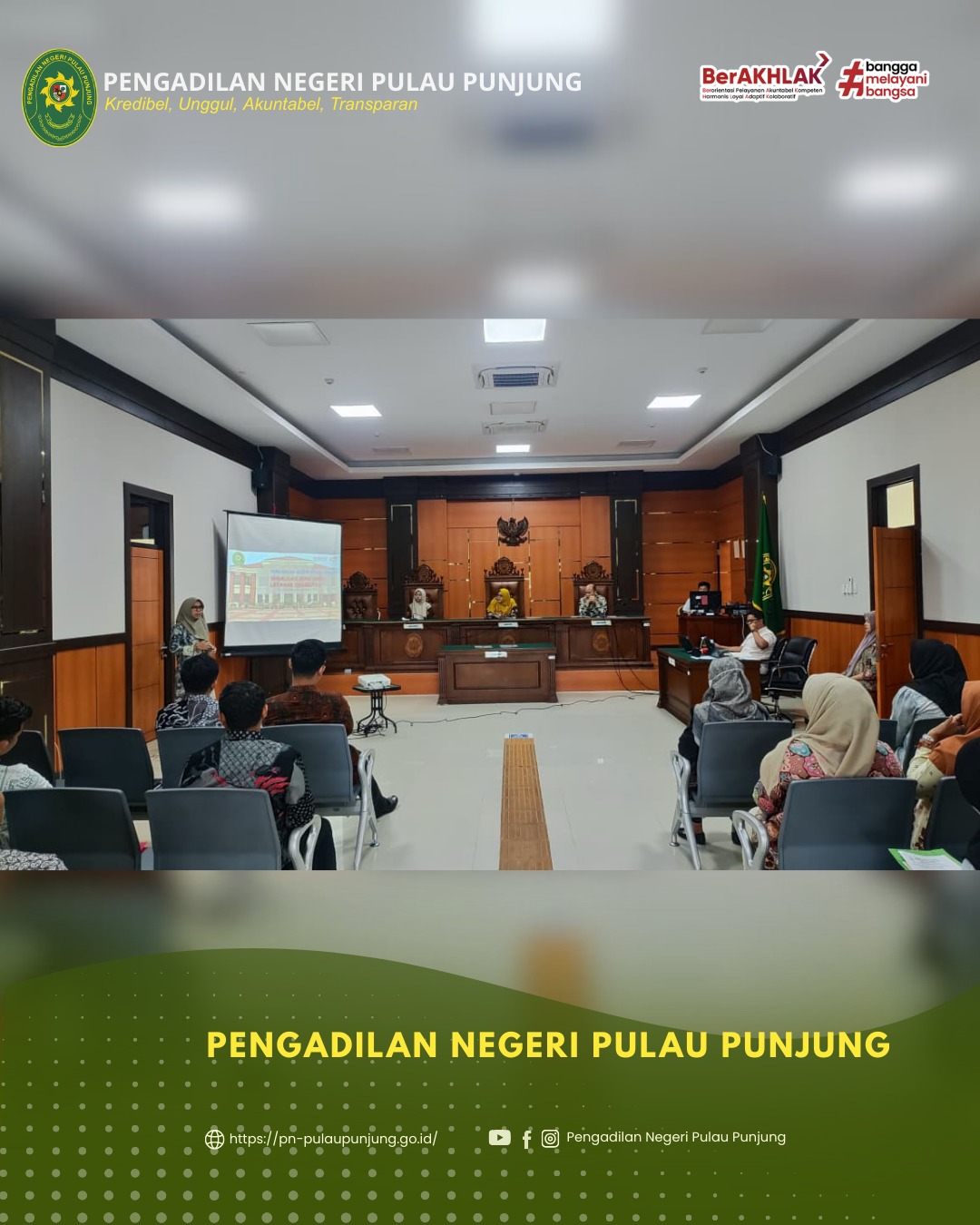Kegiatan ini dihadiri oleh Ketua Pengadilan Negeri Pulau Punjung **Dr. Diana Dewiani, S.H., M.H.**, Wakil Ketua **Bangun Sagita Rambey, S.H., M.H.**, Panitera **Warman Priatno, S.H., M.H.**, para Hakim. Turut hadir pula para Panitera Muda, Kepala Subbagian, staf kepaniteraan dan kesekretariatan, CPNS, PPPK, PPNPN, serta tenaga outsourcing di lingkungan Pengadilan Negeri Pulau Punjung.