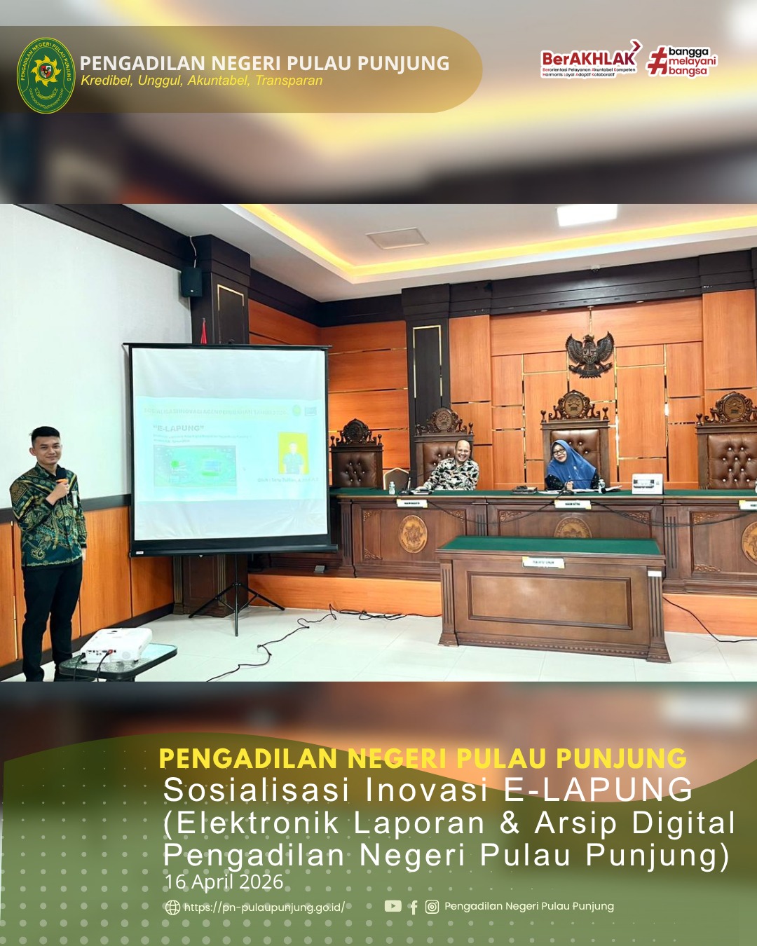 SOSIALISASI INOVASI E-LAPUNG (ELEKTRONIK LAPORAN & ARSIP DIGITAL) PENGADILAN NEGERI PULAU PUNJUNG