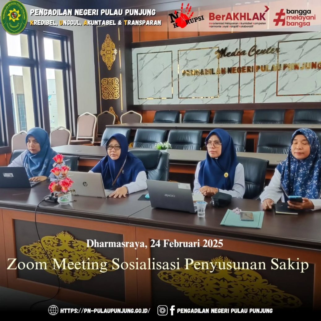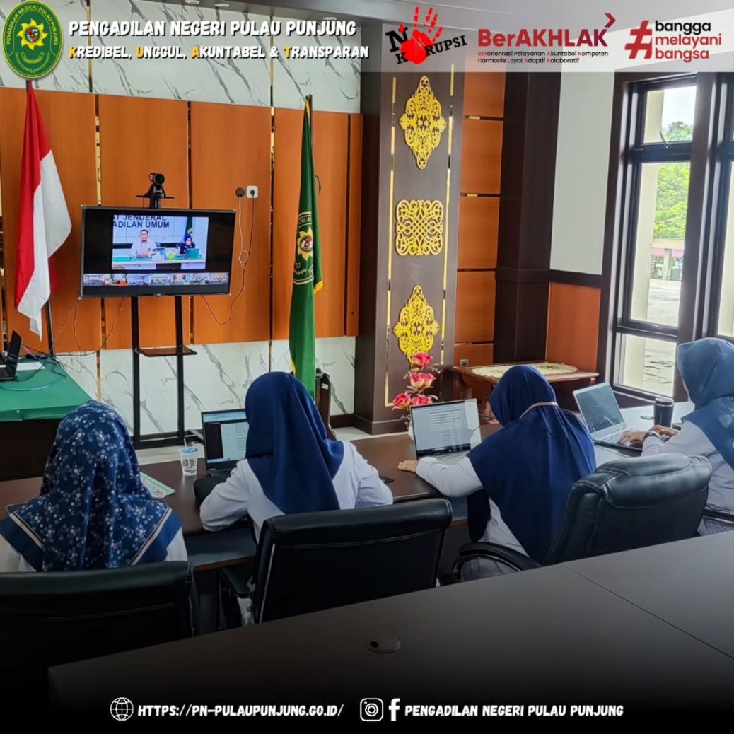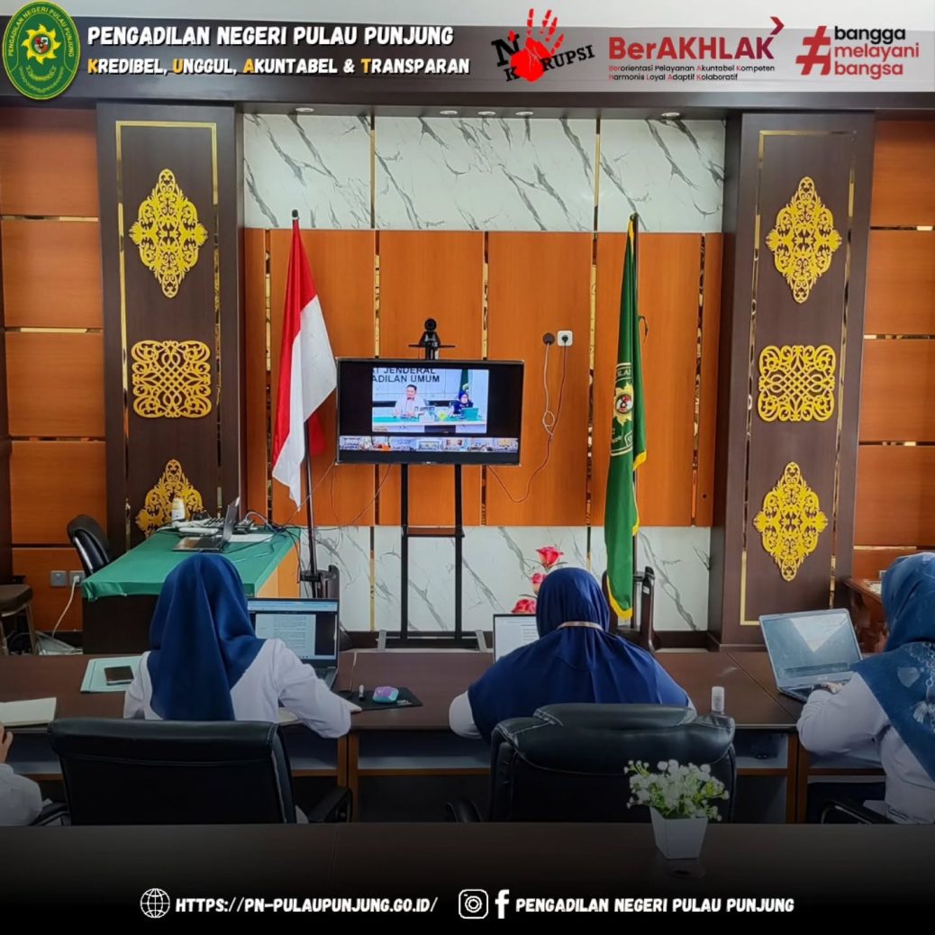 Dharmasraya, 24 Februari 2025 bertempat di ruang Media Center mengikuti undangan Direktorat Jenderal Badan Peradilan Umum Mahkamah Agung RI tentang Sosialisasi Penyusunan SAKIP di Lingkungan Badan Peradilan Umum secara Daring.