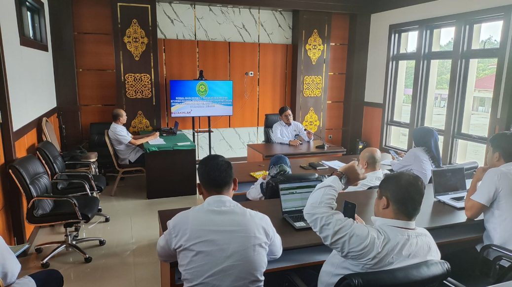 Dharmasraya, 20 Maret 2024 Bertempat Diruang Media Center Pengadilan Negeri Pulau Punjung Melaksanakan Sosialisasi Pelaksanaan Pengawasan dan Pembinaan Sesuai dengan PERMA No 7 Tahun 2016 dan SK KMA 071/KMA/SK/2008 tentang ketentuan penegakan disiplin kerja dalam pelaksanaan pemberian tunjangan khusus , Tedy Renaldy Santoso, SH Selaku Hakim Pengawas Bagian Kepegawaian, Organisasi dan Tata Laksana Pengadilan Negeri Pulau Punjung Sebagai Narasumber dari sosialisasi Perma 7 tahun 2016.